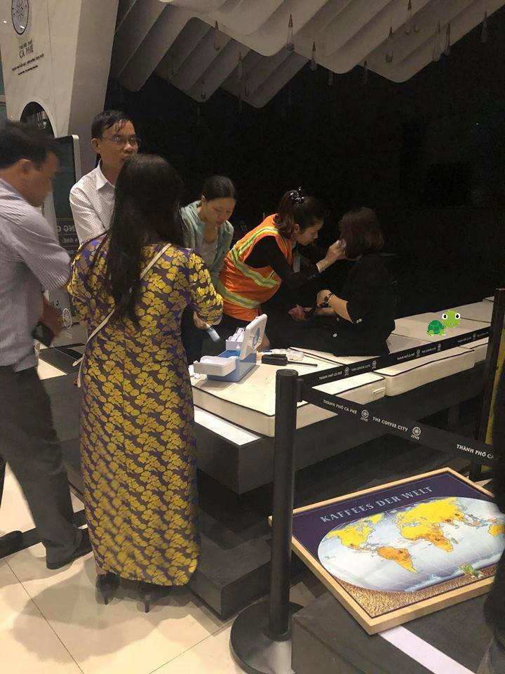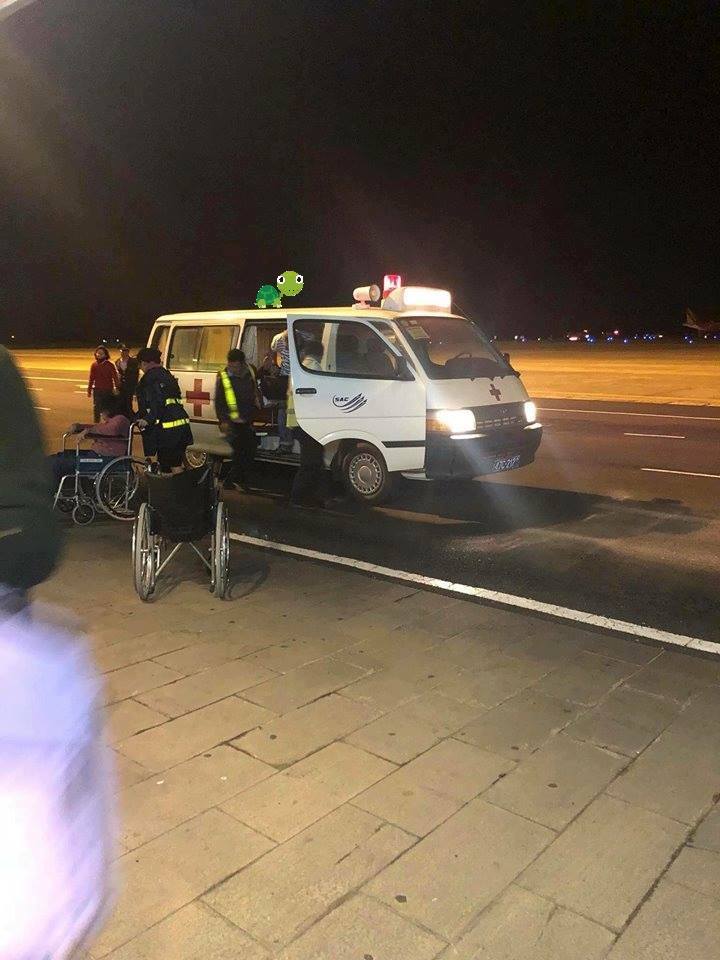 Nhân viên sân bay cơ cứu cho hành khách.