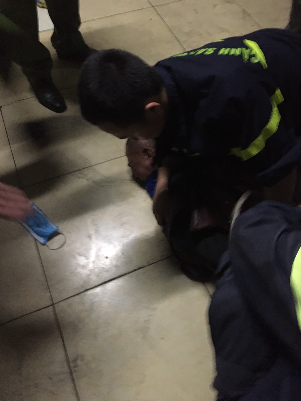 Một nữ điều dưỡng đang thai mang ba tháng phát hiện vụ việc nên tới can ngăn nhưng bị Hội nắm tóc đánh ngất xỉu. Chứng kiến sự việc, nhiều người đã nhanh chóng gọi báo công an và chính quyền địa phương.