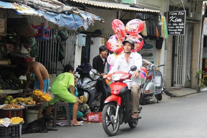 Hai cháu hiện ở với người bà con, còn anh Đặng tiếp tục đi bán bong bóng mưu sinh