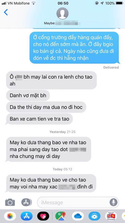 Những đoạn tin nhắn được cho là của người chồng vũ phu đe dọa gia đình nạn nhân.