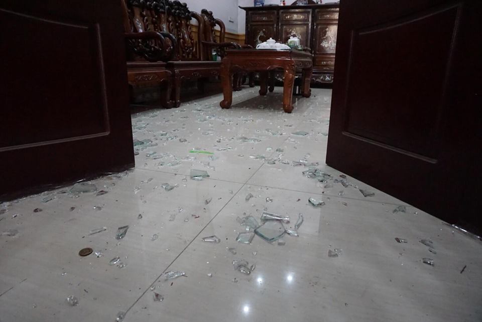Cùng chung tâm trạng hoảng loạn như chị Hương, ông Đặng Đình Quất, một người dân bị thiệt hại nặng do vụ nổ chia sẻ, vào thời điểm xảy ra sự việc, ông đang đứng ngoài sân thì nghe tiếng nổ lớn. Do quá hoảng loạn, ông Quất vội chạy vào nhà. Lúc này, vụ nổ đã khiến nhà con trai ông hư hỏng toàn bộ kính cửa cả 3 tầng, mái nhà lỗ chỗ vệt rách, thủng.