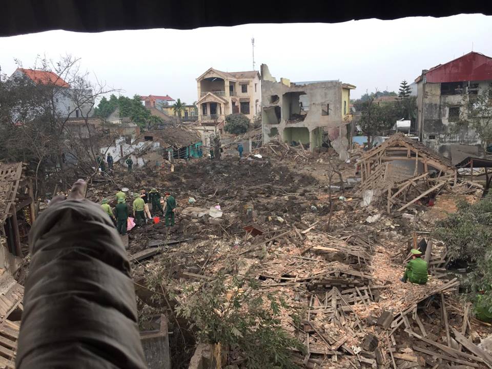 Sáng nay (3/2), nhiều giờ sau vụ nổ kinh hoàng, hàng nghìn người dân ở xã Văn Môn, huyện Yên Phong, tỉnh Bắc Ninh vẫn bàng hoàng sợ hãi. Với họ, đây có lẽ là ký ức đáng sợ nhất vì từ nhỏ đến lớn, họ chưa từng được chứng kiến vụ việc nào tương tự. Vụ nổ khiến một khu đất bị san phẳng, nhiều ngôi nhà chìm trong cảnh đổ nát, tiêu điều. Các căn khác tuy không bị “san bằng” nhưng đồ đạc bên trong cũng hư hại nặng nề.