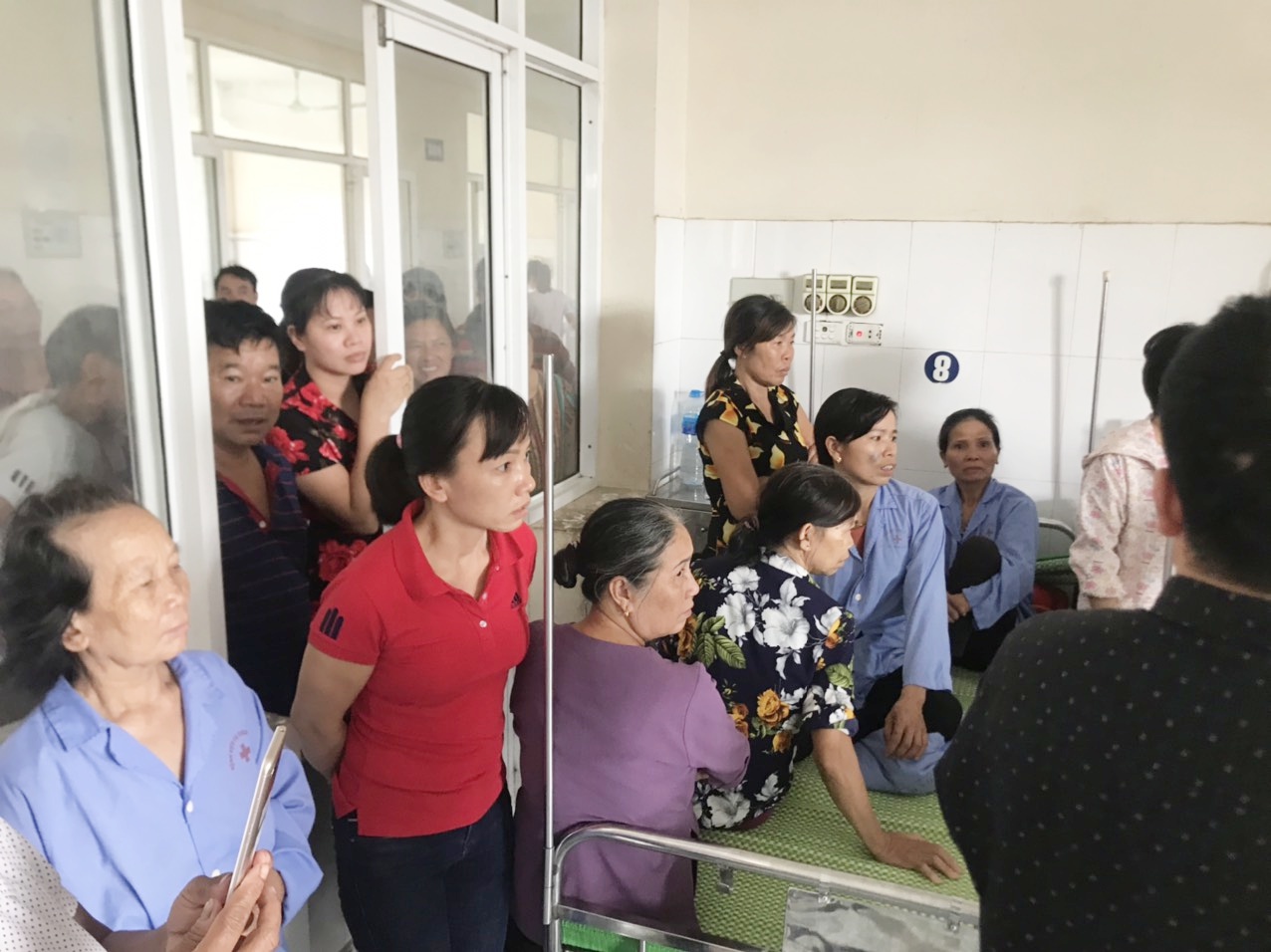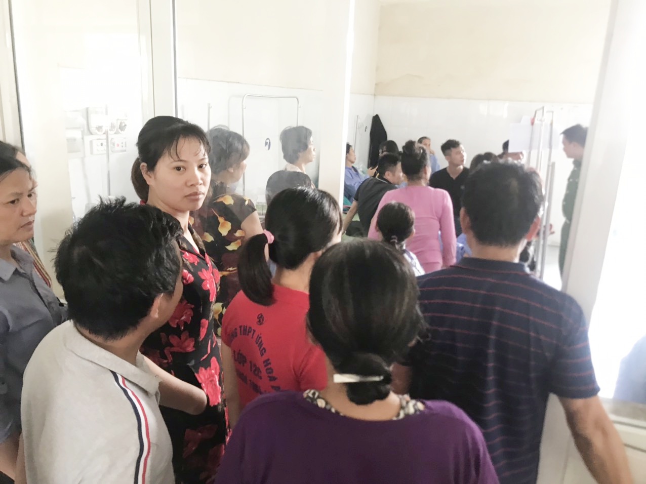 Rất đông người nhà và bệnh nhân tại Bệnh viện Vân Đình nghe tin chị H. bị hành hung kéo đến hỏi thăm.