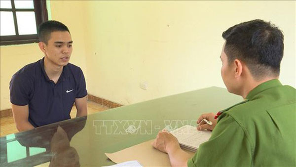 Đối tượng Hiếu tại cơ quan điều tra. Ảnh TTXVN.