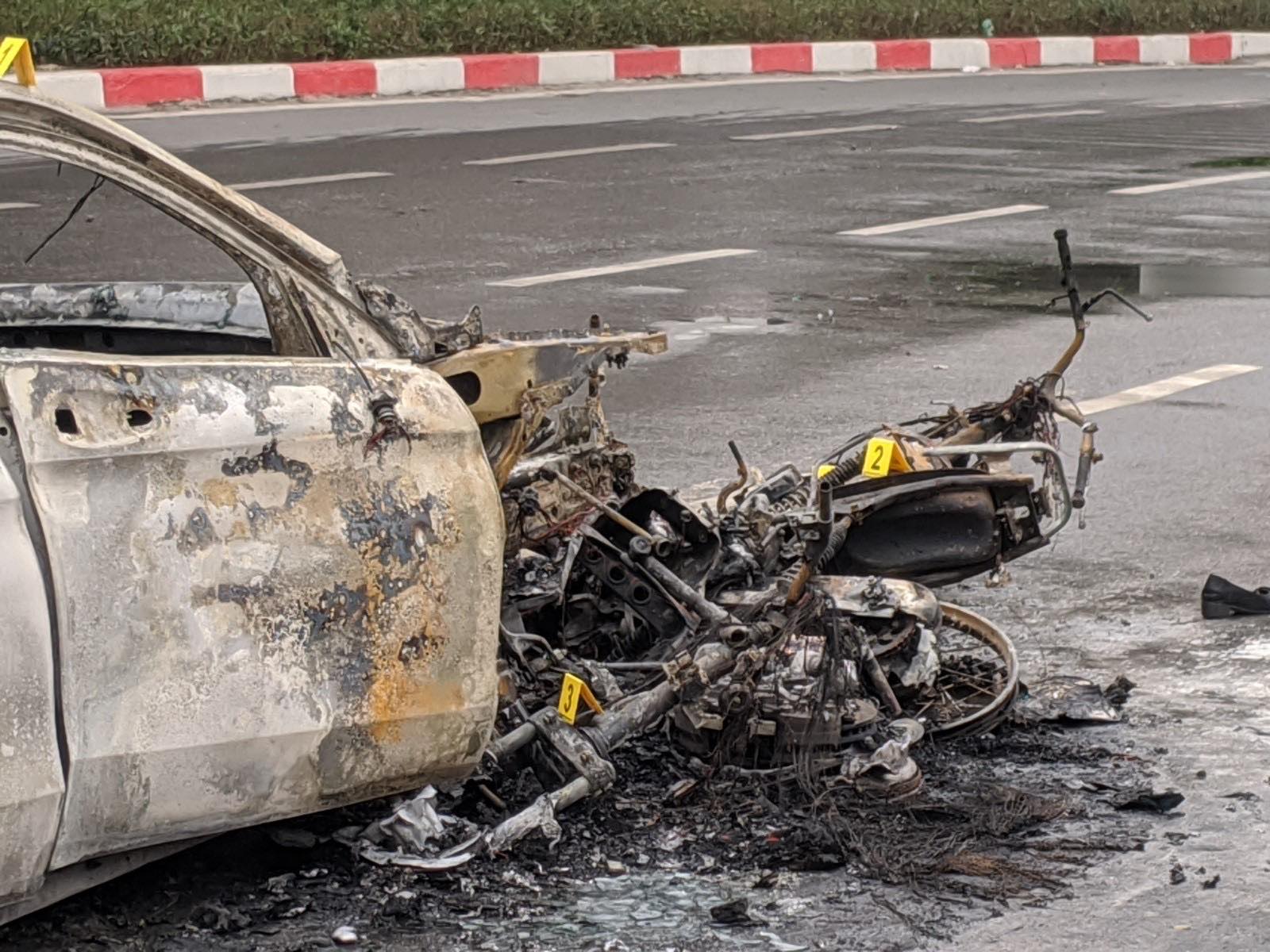 Chỉ huy Đội CSGT, Công ăn quận Cầu Giấy cho biết, Cơ quan Cảnh sát điều tra đang khẩn trương xác định danh tính nữ nạn nhân thiệt mạng. Do các xe đều bị cháy rụi, nên công tác khám nghiệm hiện trường nhằm xác định số khung, số máy của phương tiện sẽ được tiến hành cẩn trọng, kỹ càng, nhanh chóng xác định chủ sở hữu.