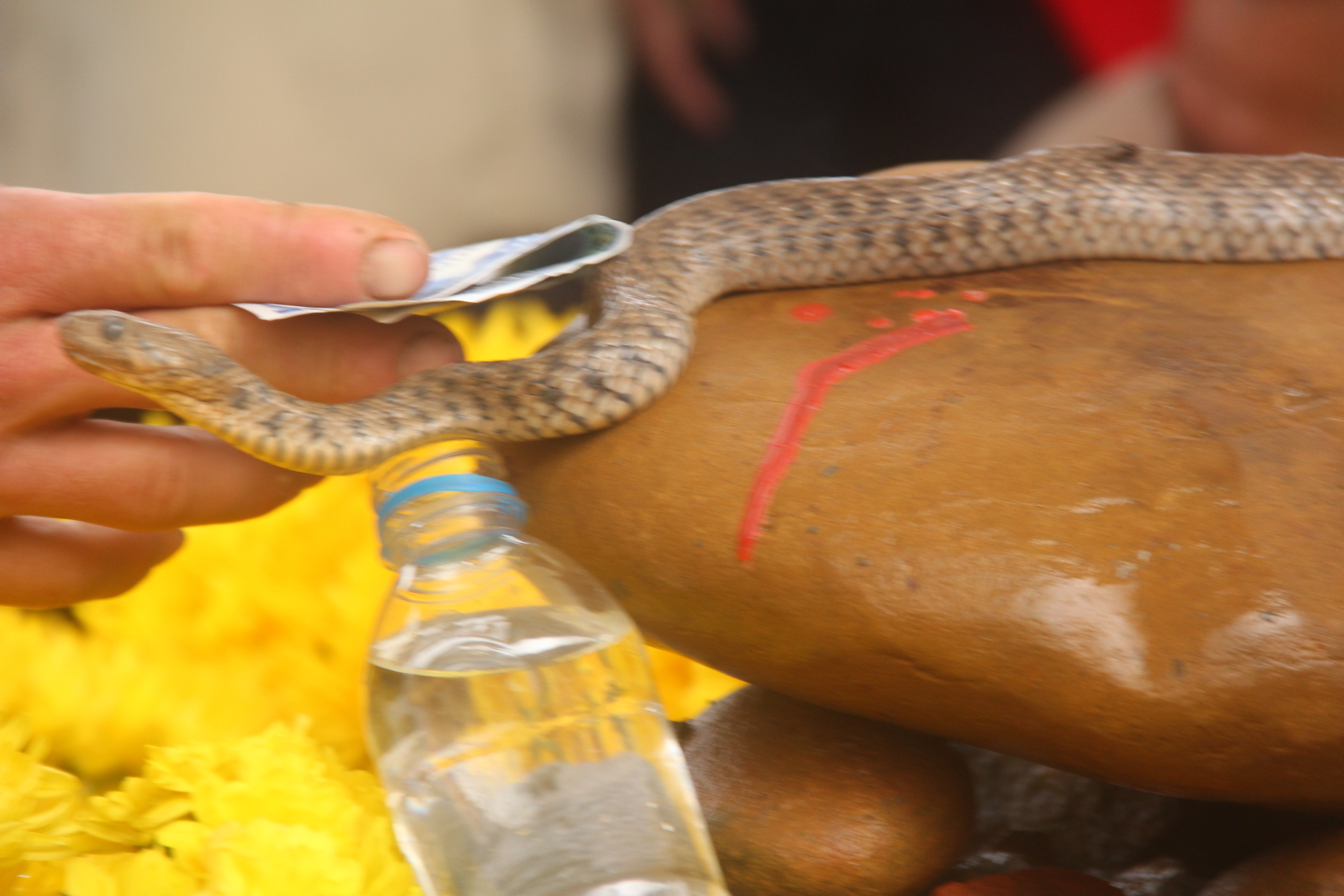 Bên cạnh những người “sùng bái” 2 con rắn này thì một số người khác lại cho rằng 2 con “rắn thần” mà người dân đang tôn thờ thực chất chỉ là một cặp rắn nước. Do được người dân tự phong là “rắn thần” nên cứ thắp hương khấn vái và sờ vào mình để lấy hên nên con rắn nước nhỏ mới chết. Hiện con rắn mẹ còn lại cũng đang rất yếu.