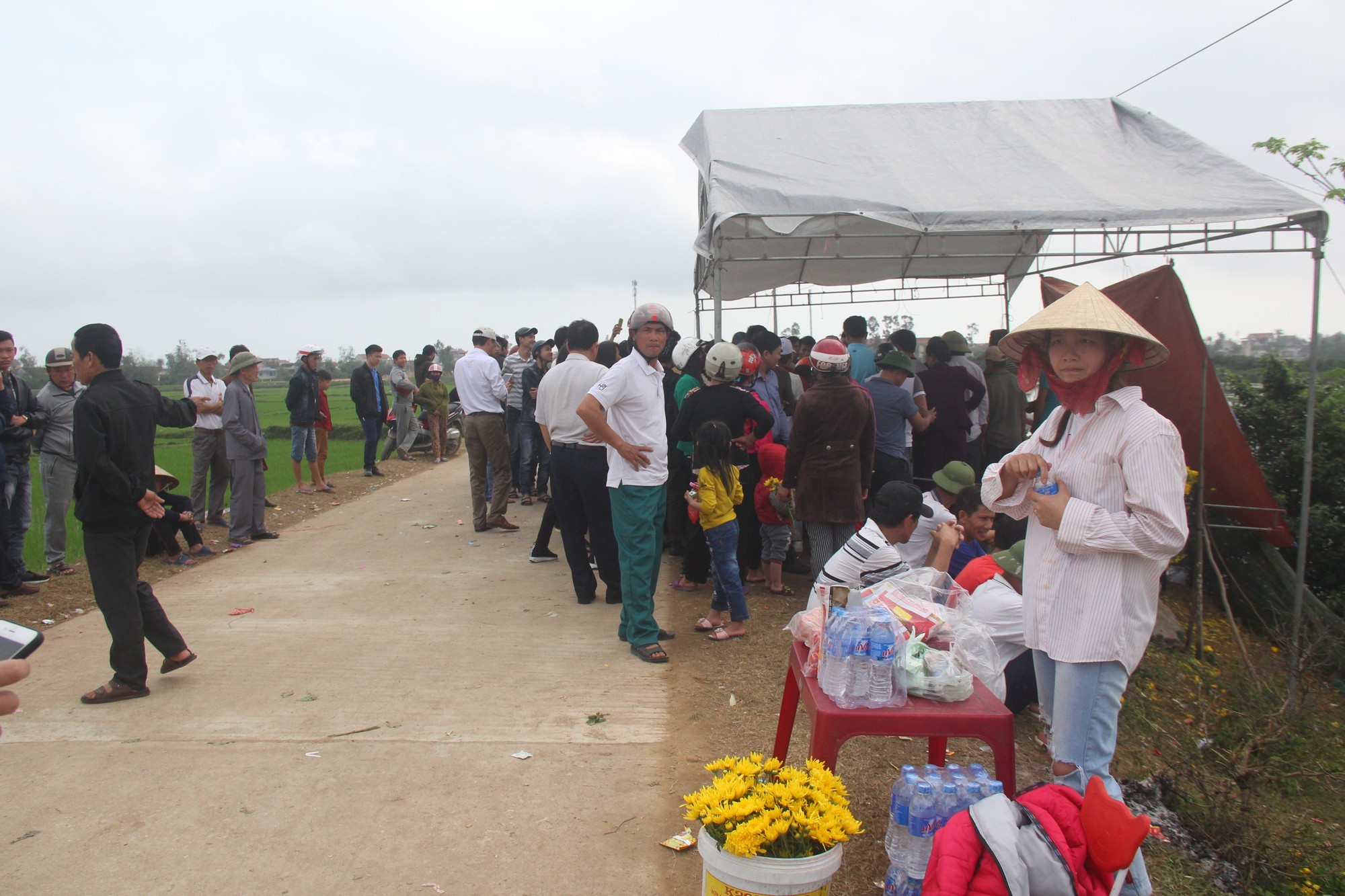 Người dân che rạp tại ngôi mộ có con rắn. Ảnh: H. Long