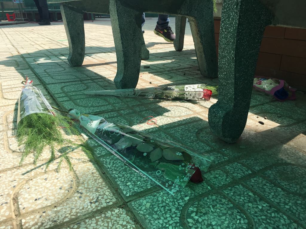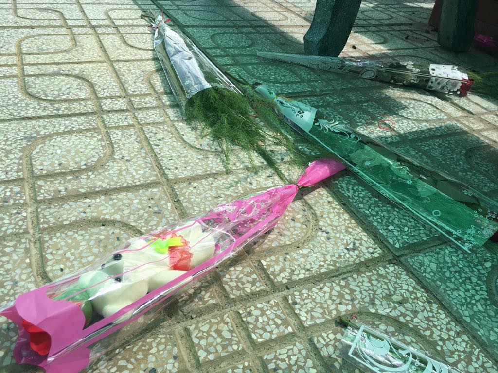 Hoa gấu chưa kịp tặng thầy cô đã nằm lăn lóc sau sự việc.
