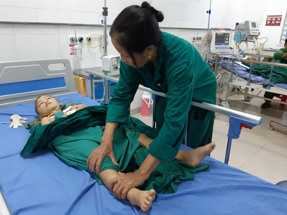 Theo bác sĩ Dũng, khi vào viện, bé Nhân bị tổn thương rất nặng do vết đâm vào cổ và vùng lồng ngực. “May mắn là đã được đưa đến viện và cấp cứu ban đầu kịp thời, dù bị mất máu nhiều nhưng vẫn bảo toàn được tính mạng”, bác sĩ Dũng cho hay.