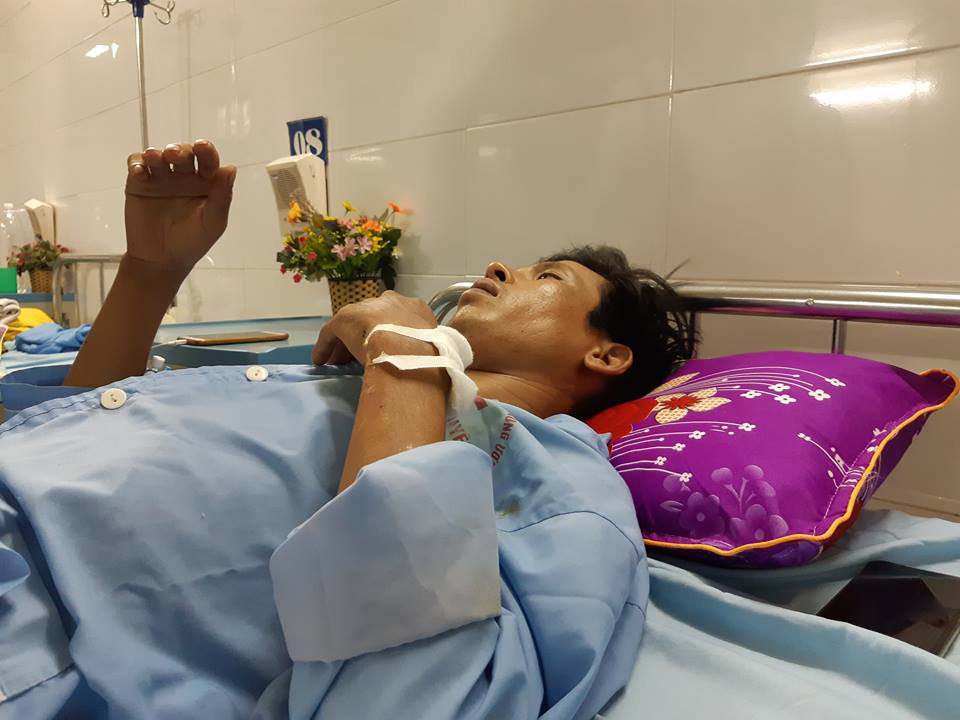 Nằm trên giường bệnh với nhiều vết thương trên cơ thể, chị Ngọt (vợ anh Nguyên) kể, vào tối ngày 24/9 gia đình chị đi ngủ nhưng chỉ khoá cửa cổng còn cửa trong nhà vẫn mở để sáng sớm hôm sau bán đàn lợn sớm.