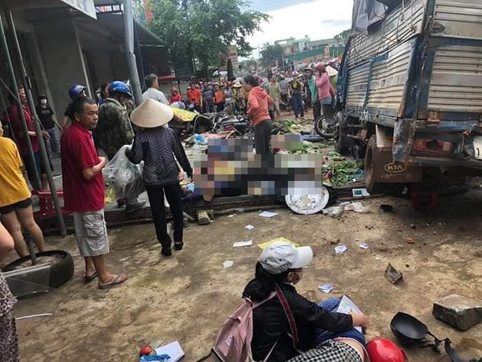 Xe tải tiếp tục chạy thêm 300m thì va chạm với xe tải mang BKS 47C khiến phương tiện này lao vào chợ , cuốn 10 người cùng 9 xe máy vào gầm.