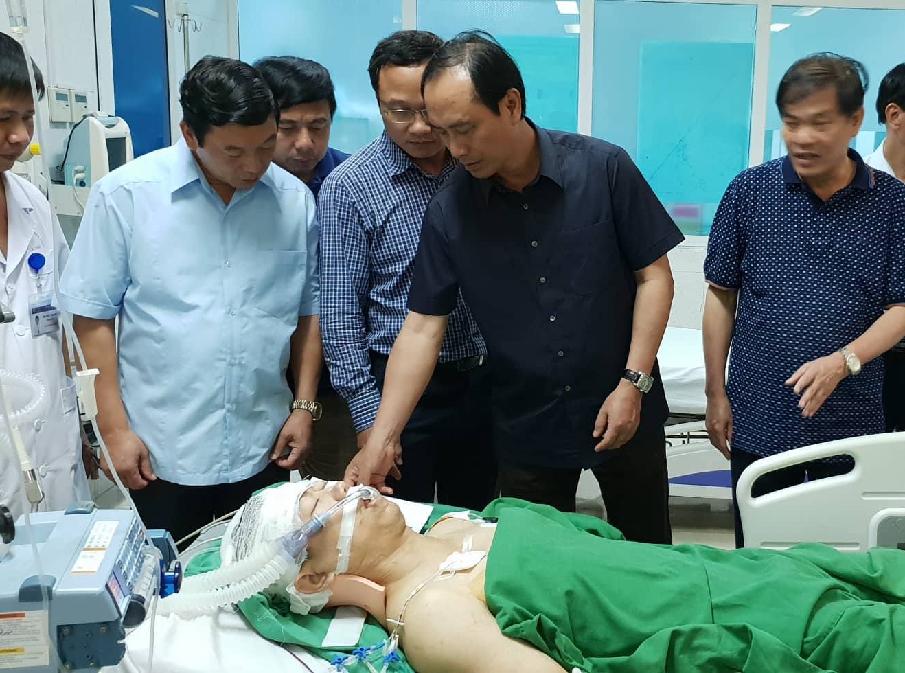 Thứ trưởng Bộ GTVT Lê Đình Thọ và Phó chủ tịch Ủy ban ATGT Quốc gia Khuất Việt Hùng cùng các ban ngành đến bệnh viện hỏi thăm sức khoẻ các nạn nhân.
