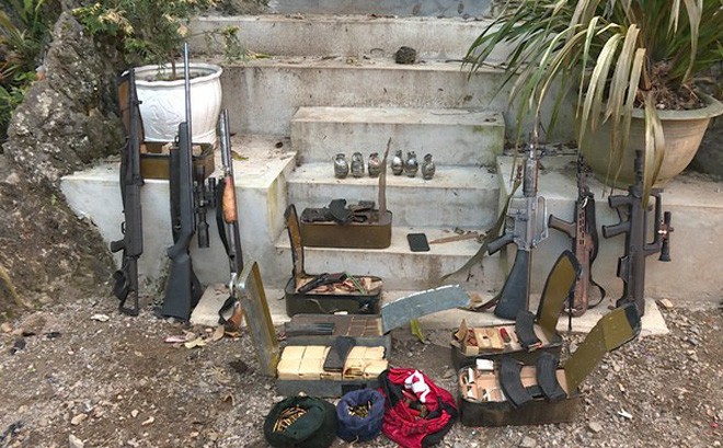 Tính đến sáng 30/6, lực lượng công an thu giữ tại nhà đối tượng Tuân 38 khẩu súng các loại gồm AK, Săm pa lếch, Cạc bin, K54, K5, 8 quả lựu đạn, 15 ống giảm thanh,14 ống ngắm súng tiểu liên, 31 hộp tiếp đạn các loại bên trong chứa đầy đạn, hơn 6000 viên đạn các loại và nhiều vật chứng có liên quan.