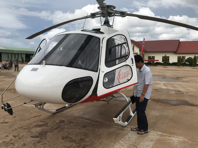 Trực thăng đã đến khu vực các công nhân bị mắc kẹt do vỡ đập. Ảnh Thanh Niên.
