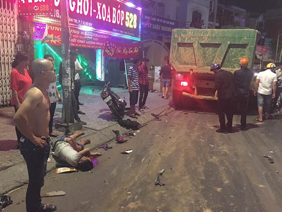 Tại hiện trường, nhiều xe máy hư hỏng nằm la liệt trên đường, nhiều người bị thương kêu cứu, hàng chục dải phân cách bị húc văng, riêng chiếc xe ben nằm cạnh lề đường ngược lại. Công an quận Gò Vấp nhanh chóng có mặt hiện trường, phong toả 1 làn đường để điều tra, xử lý vụ việc.