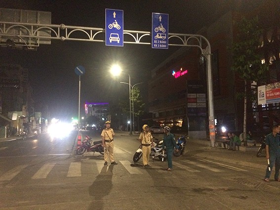 Lực lượng chức năng phong toả đoạn đường để phục vụ công tác điều tra.