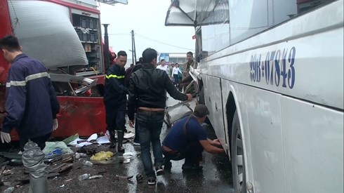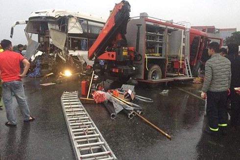 Xe khách đâm xe cứu hoả trên cao tốc Pháp Vân -Cầu Giễ ngày 18/3