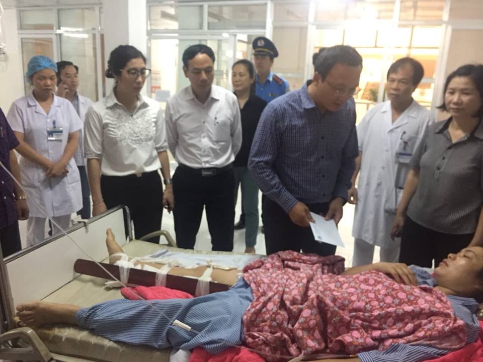 Tại bệnh viện, ông Khuất Việt Hùng, Phó chủ tịch chuyên trách Ủy ban ATGT Quốc gia, thay mặt đoàn công tác đã trao hỗ trợ mỗi gia đình nạn nhân tử vong 5 triệu đồng/người, mỗi nạn nhân bị thương 2 triệu đồng/người.