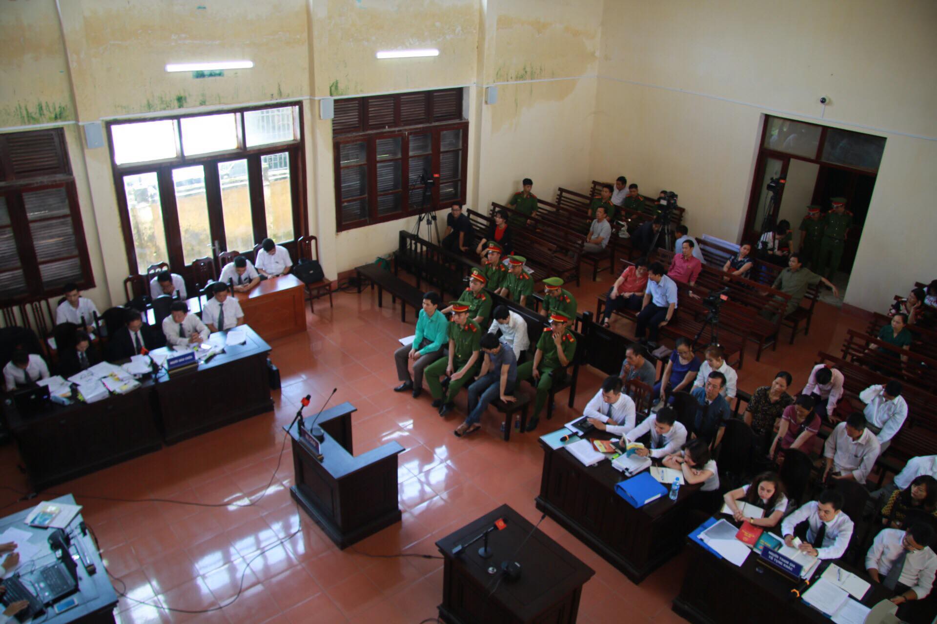 Các bị cáo tại phiên xét xử sáng 22/5.