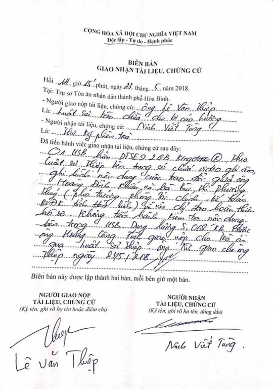 Biên bản giao nhận tài liệu, chứng cứ.