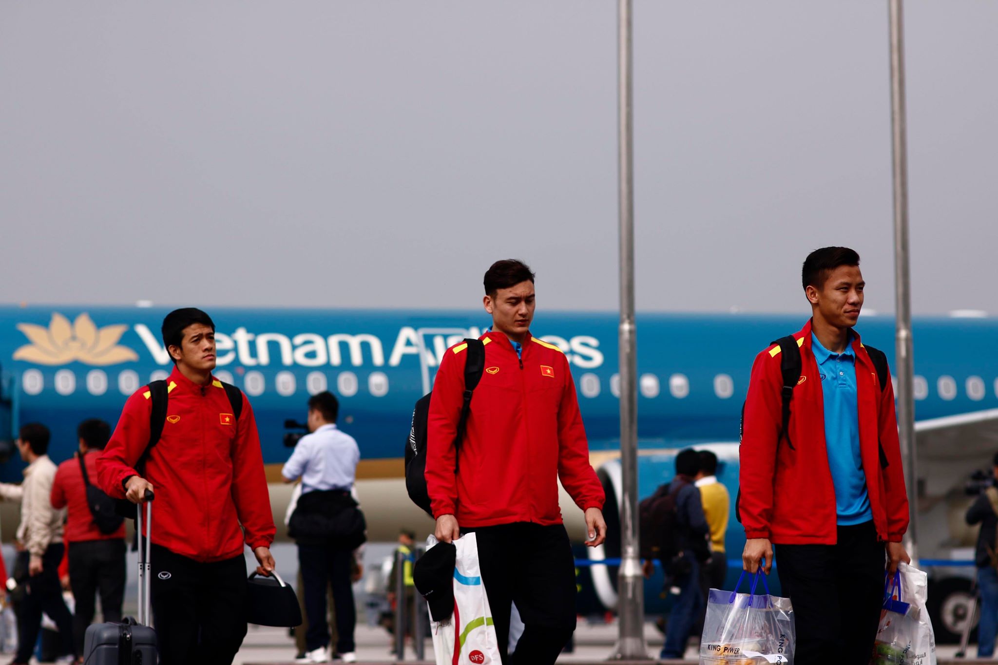 Khoảng 16 giờ ngày 26/1, đội tuyển Việt Nam đã có mặt tại sân bay quốc tế Nội Bài sau một chuyến bay dài.