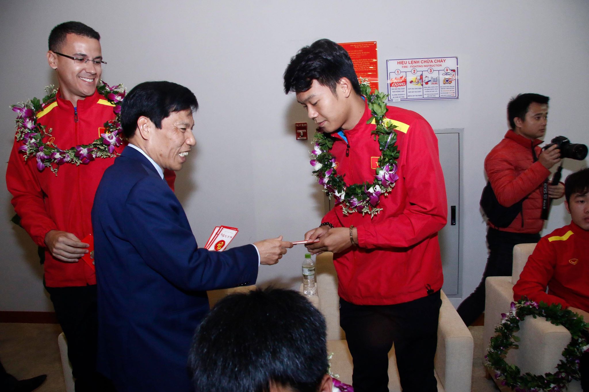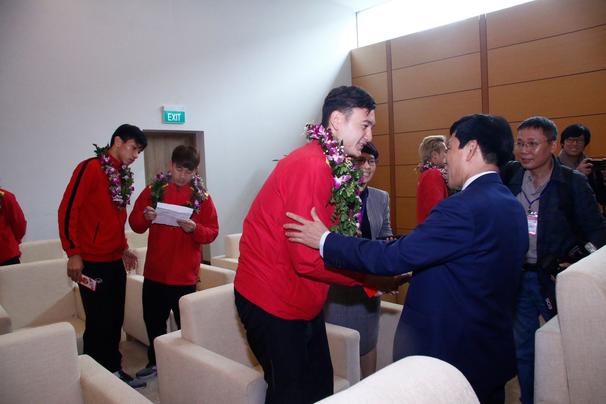 Đặc biệt, đội tuyển Việt Nam đã được chào đón bởi Bộ trưởng Văn hóa thể thao và du lịch Nguyễn Ngọc Thiện và Ban lãnh đạo của VFF chào đón nồng nhiệt.