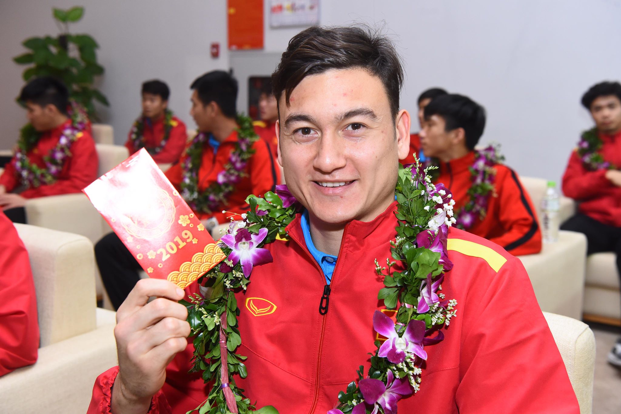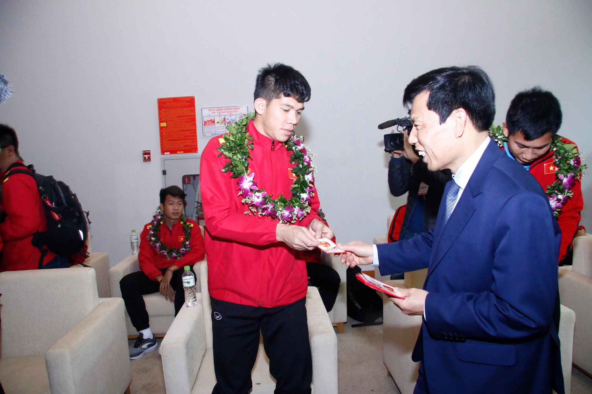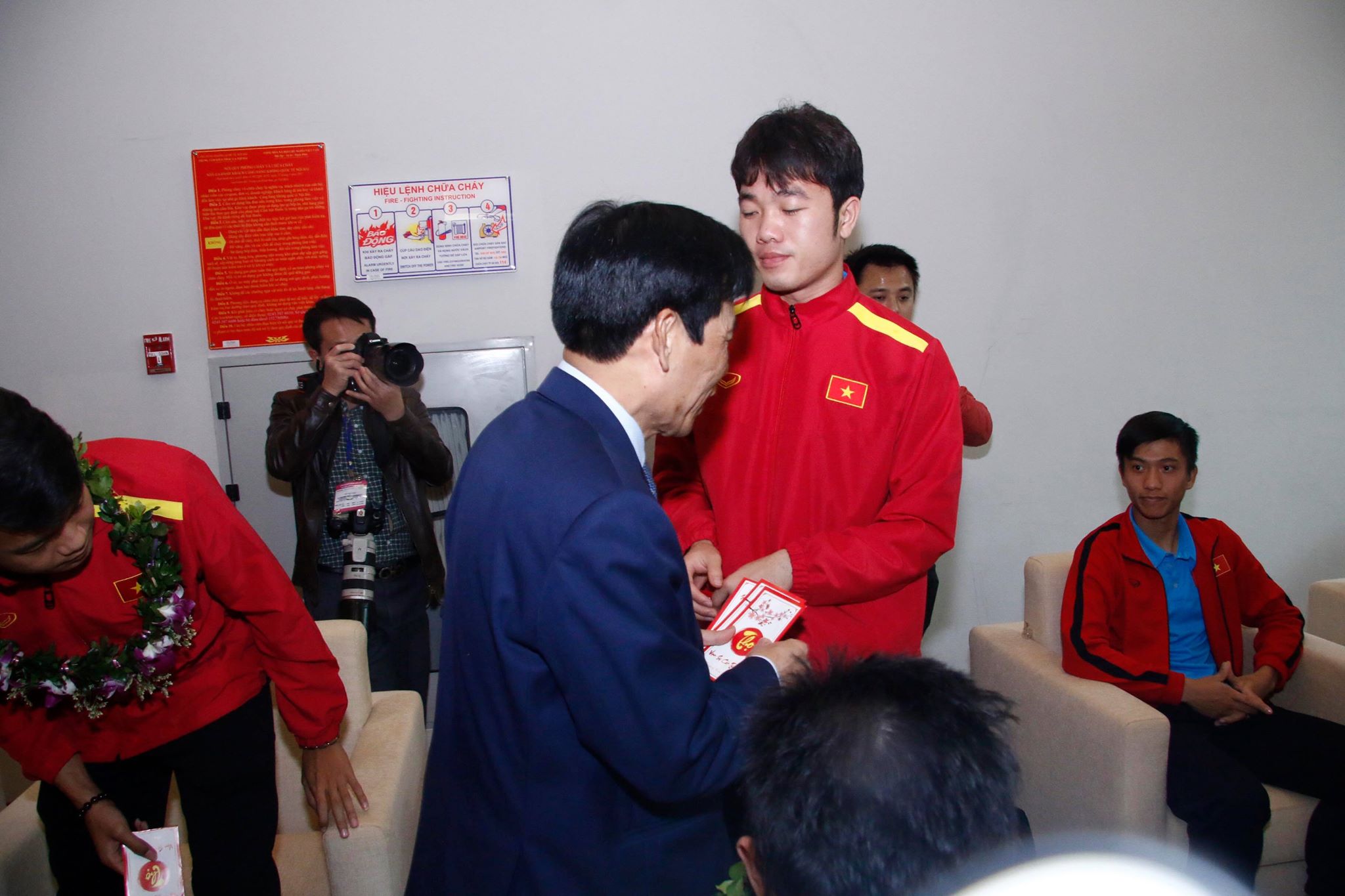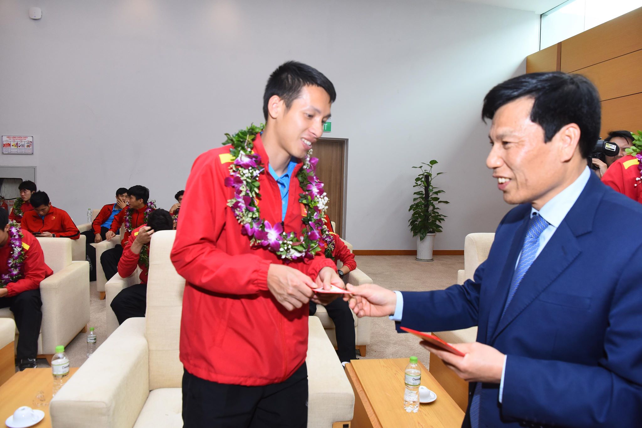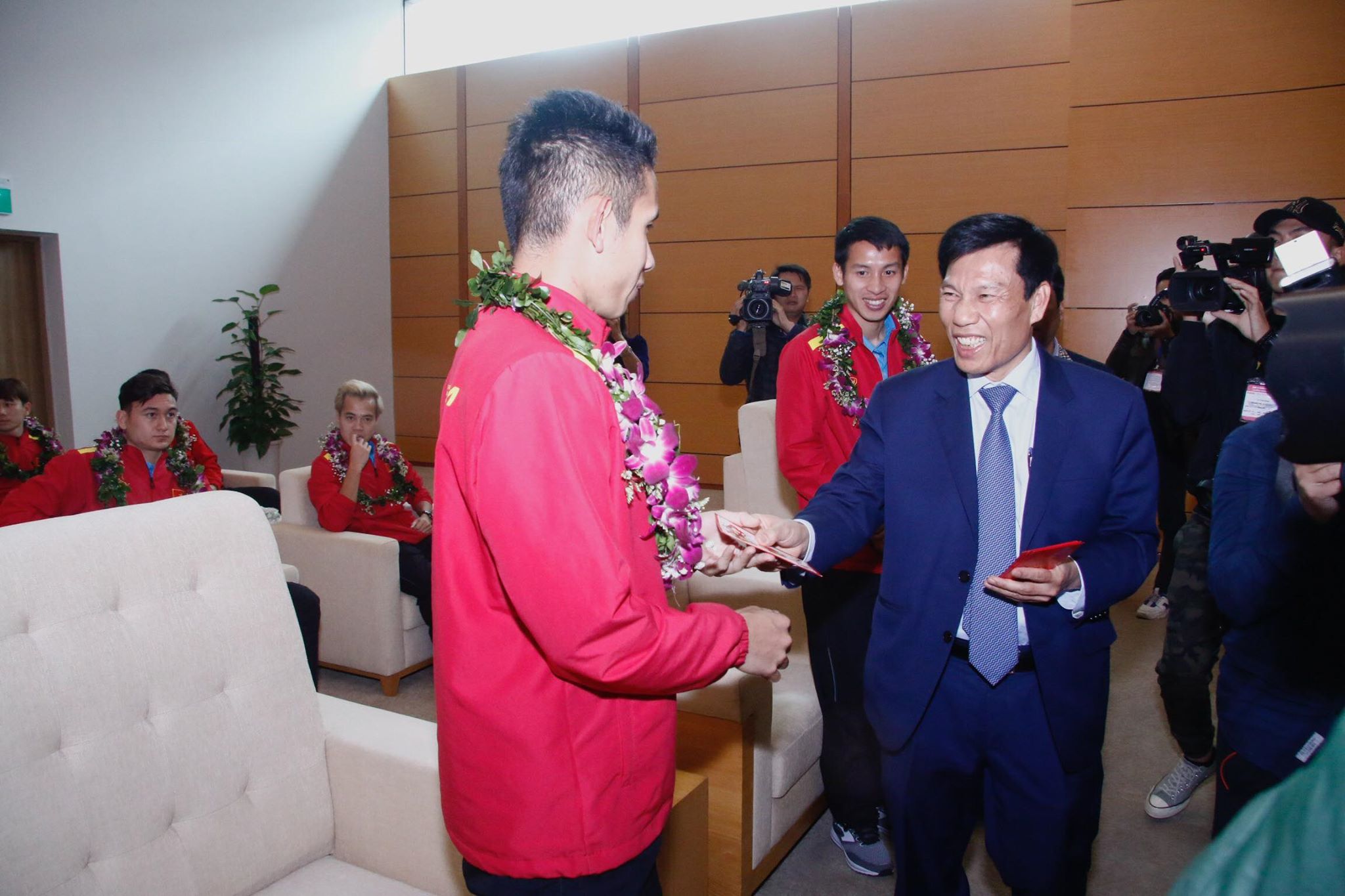 Các cầu thủ vui vẻ được Bộ trưởng lì xì