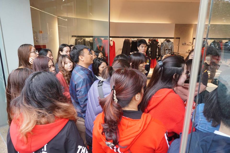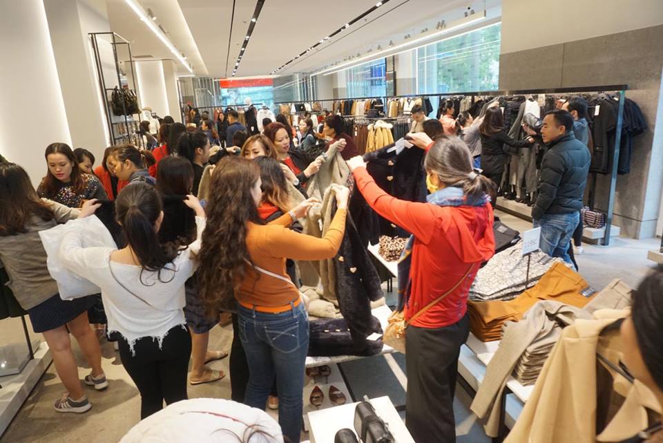 Nhiều tín đồ thời trang hối hả chạy ập đến các cửa hàng hiệu giảm giá để sớm mua được sản phẩm mình thích.