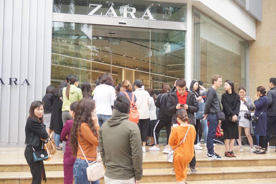 Tại trung tâm thương mại Vincom (Bà Triệu) có rất đông người xếp hàng chờ đợi mua hàng. Theo ghi nhận của phóng viên, mặc dù 9h30 mới mở cửa nhưng từ 8h, hàng trăm người đã đứng trước cửa hàng Zara sẵn sàng “giành” các món đồ đẹp “giá hời”.
