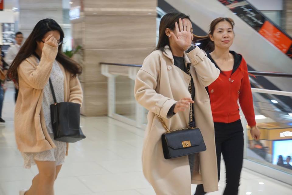 Nhiều quý cô “trốn làm” đi săn hàng hiệu, khi thấy ống kính chụp ảnh hướng về phía mình đã vội che mặt.