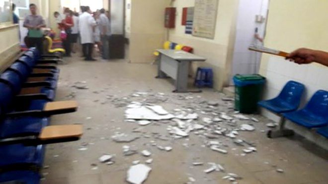 Thời điểm đó, có rất đông bệnh nhi và người nhà đã chờ khám bệnh và bị vữa rơi trúng. Trong đó, có một cháu bé bị vữa rơi trúng đầu và phải đưa đi cấp cứu.