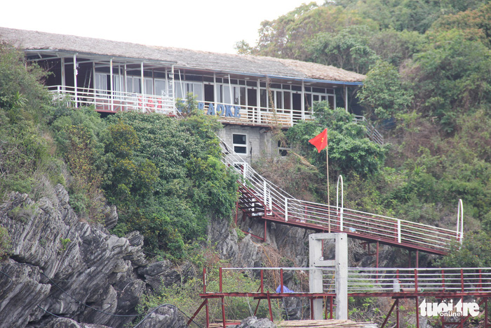 Một quầy bar - karaoke xây dựng tại khu vực đảo Cát Dứa 2 thuộc Vườn quốc gia Cát Bà - Ảnh: TIẾN THẮNG
