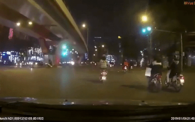 Theo người đăng tải clip, vụ việc xảy ra tối 6/1 ở ngã tư Trần Khát Chân - Đại Cồ Việt (Hà Nội).