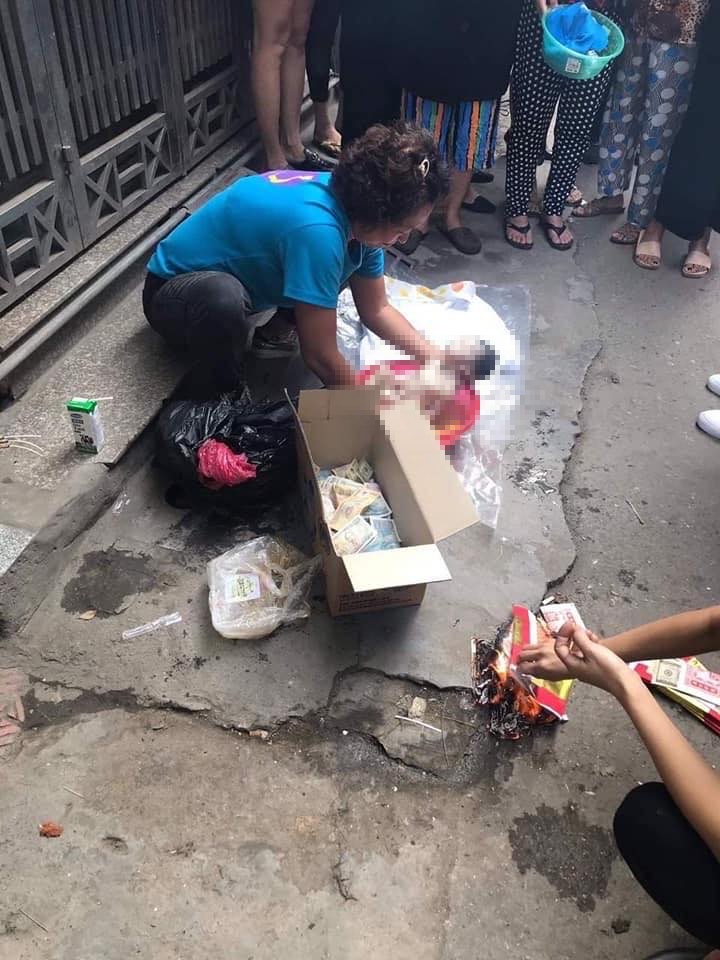 Người dân cũng đã đau buồn tiến hành khâm liệm cho cháu bé xấu số. Bước đầu xác định cháu bé được bỏ trong túi bọc nylon màu đen.