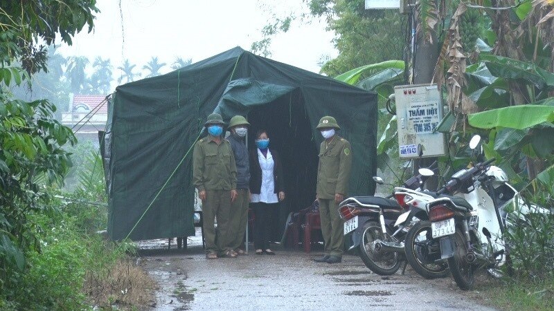 Lực lượng chức năng đang kiểm soát tại thôn 3 Ngô Khê, xã Bình Nghĩa, huyện Bình Lục. Ảnh: Báo Giao thông