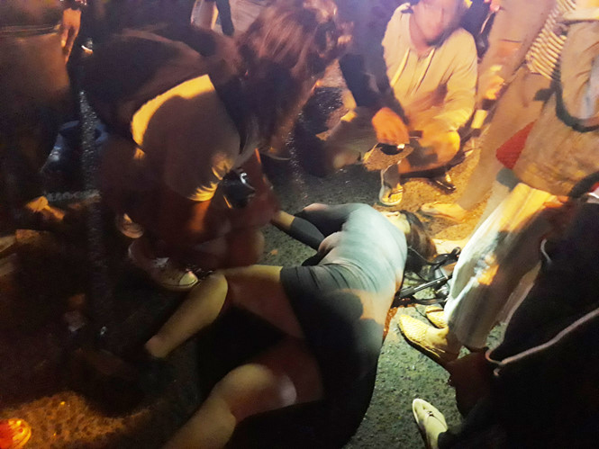 Chị Do Sophia Thuy đang được cấp cứu tại chỗ ẢNH: LÂM VIÊN