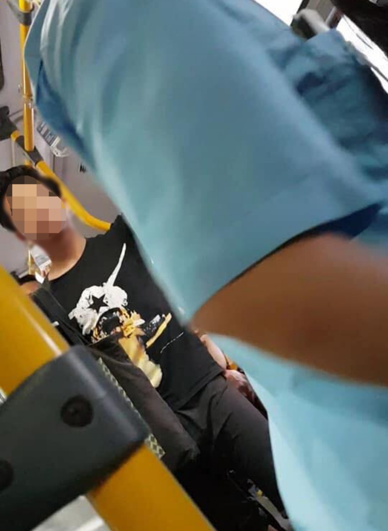 Ngay sau đó, thanh niên này đứng ngay sau ghế ngồi của 2 cô gái và có hành vi “tự sướng”. Phát hiện sự việc, 1 số người ngồi sau đã la lớn để phụ xe, tài xế và hành khách trên xe biết.