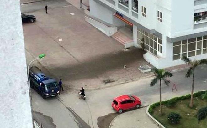 Vụ nổ xe bồn chở phân đã xảy ra tại tòa A14B2 khu đô thị Nam Trung Yên (Cầu Giấy, Hà Nội). Ảnh: H.Đ.