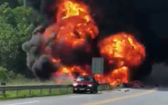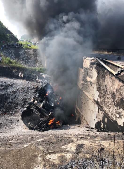 Ông Tuấn cho biết thêm, vụ tai nạn khiến cho tài xế xe bồn bị thương nặng được đưa đi cấp cứu. vụ việc xảy ra do chiếc xe bồn tông vào xe con rồi rơi xuống về đường phát nổ bốc cháy
