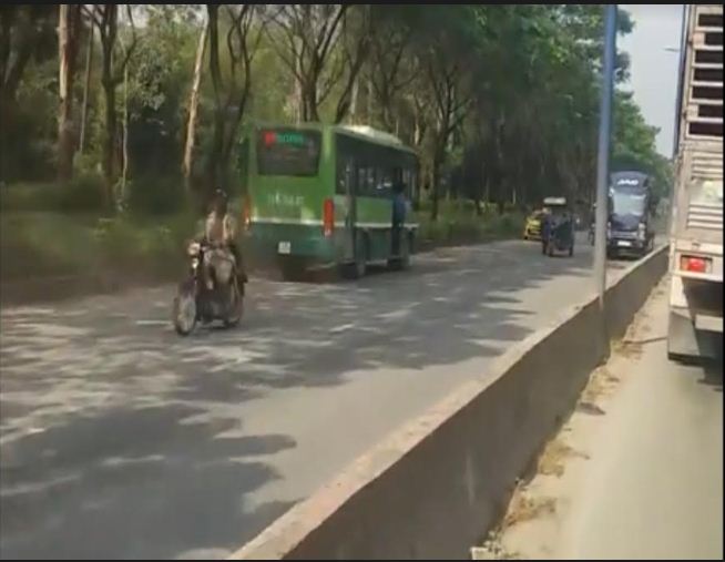 Ảnh cắt từ clip ghi lại cảnh xe buýt chạy ngược chiều.