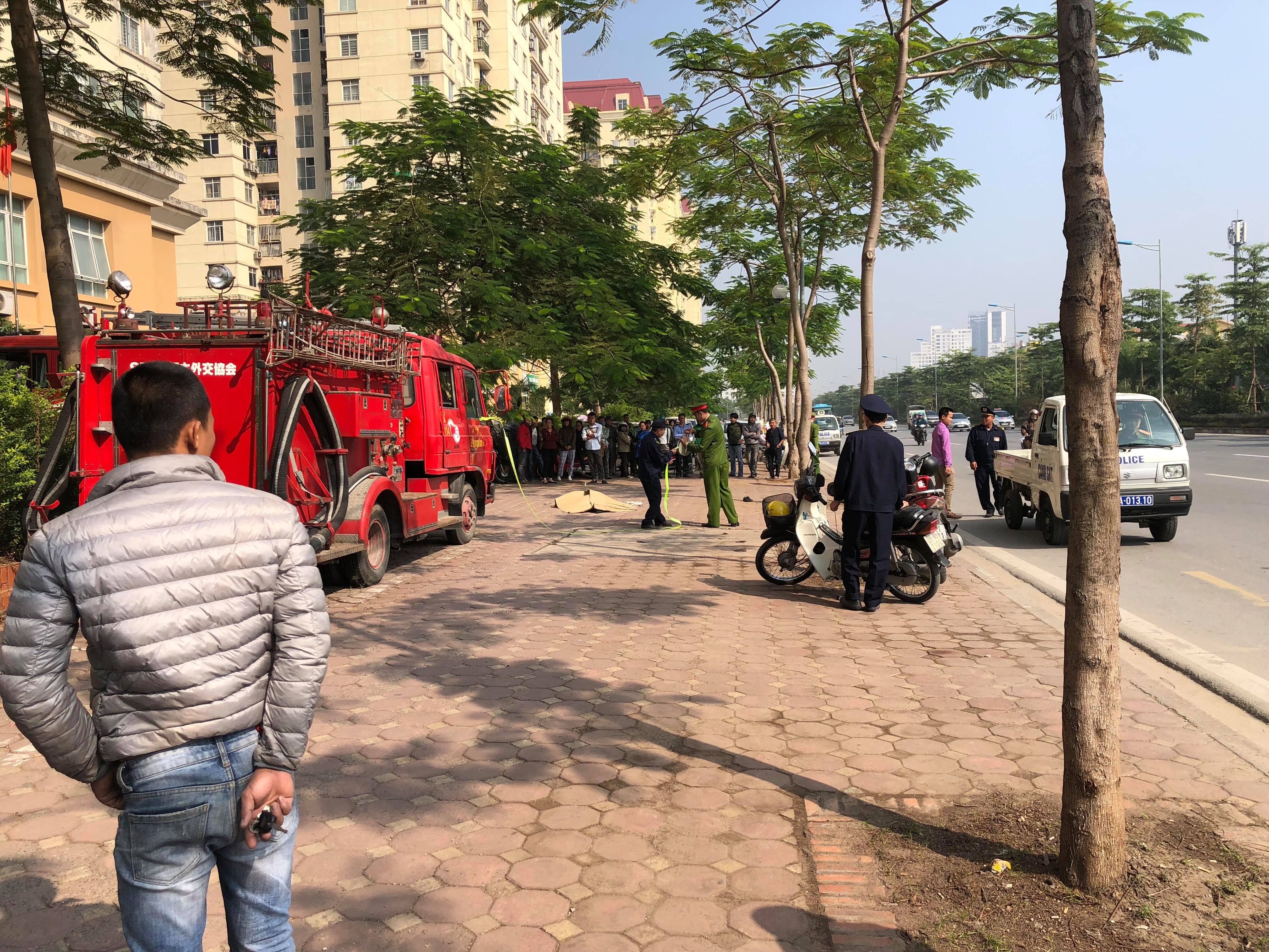 Chiếc xe cảnh sát PCCC quận Tây Hồ tại hiện trường.
