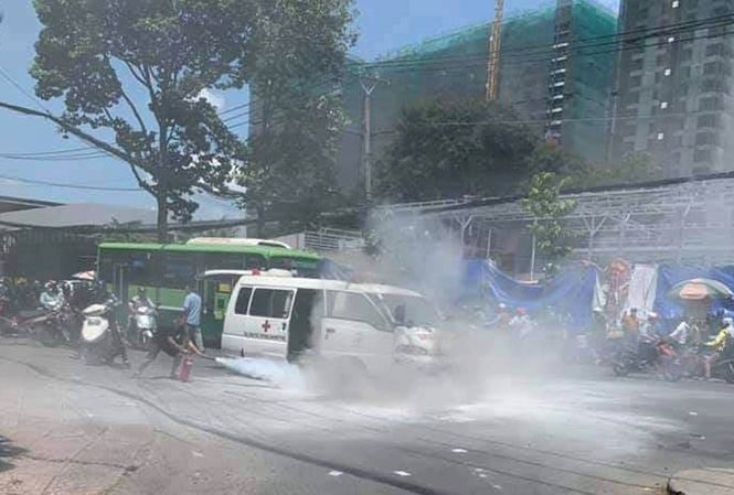 Người dân sau đó đã dùng bình chữa cháy mini để dập lửa. Khoảng 10 phút sau, ngọn lửa được khống chế. May mắn, thời điểm đó xe cứu thương không chở bệnh nhân.