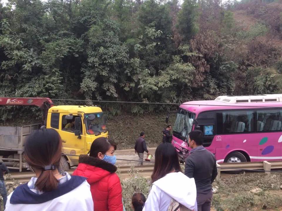 “Trên xe chở khoảng 30 khách du lịch, va chạm chỉ khiến tài xế bị thương ở chân còn những người khác may mắn an toàn. Kính xe du lịch bị rạn vỡ”, vị lãnh đạo CSGT thông tin.