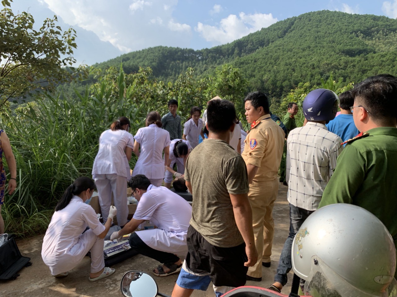 Nhận được tin báo, lực lượng chức năng gồm khoảng 100 người thuộc các lực lượng công an, quân đội, dân quân tự vệ được điều động tới hiện trường cứu hộ các nạn nhân.