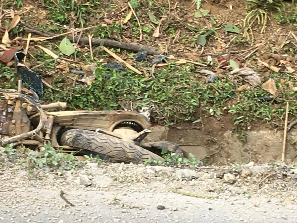 Xe máy của nạn nhân bên vệ đường. Ảnh Otofun