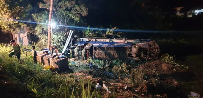 Hiện trường vụ tai nạn trong đêm. Ảnh: Báo Người Lao Động