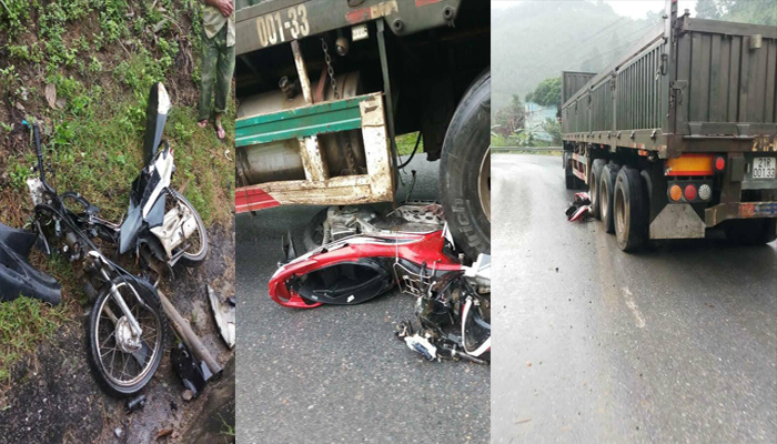 Tại hiện trường, 2 xe máy bị hư hỏng nặng, 2 xe còn lại bị hư hỏng hoàn toàn. Được biết, vụ việc xảy ra trên đoạn đường dốc, ngoài trời đang mưa, nên đường trơn trượt.