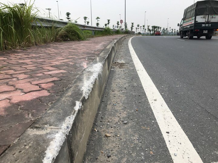 Mảng vữa lan can đường bị bong tróc sau tai nạn.