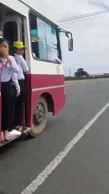 Mới đây, trên mạng xã hội đang truyền tay nhau đoạn clip dài 30 giây ghi lại cảnh ô tô chở học sinh lưu thông trên đường nhưng ở hai cửa lên xuống, nhiều học chen chúc đứng, đu bám rất nguy hiểm.