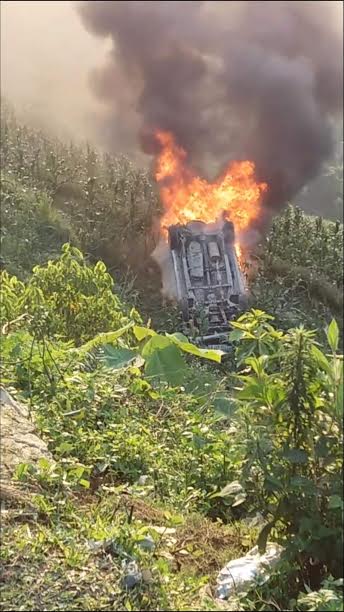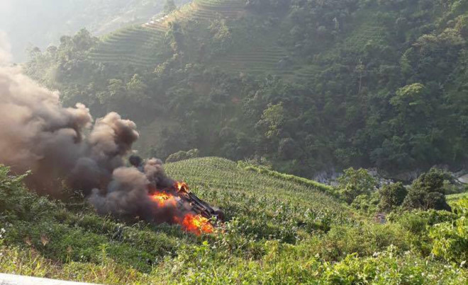 Theo thông tin gần 7 giờ sáng nay (29-5), trên quốc lộ 4D, đoạn Km123+500, thuộc địa phận huyện Bát Xát (Lào Cai), ô tô 7 chỗ chạy hướng SaPa - TP Lào Cai (tỉnh Lào Cai), khi đi tới đoạn đường thuộc địa phận xã Tòng Sành, huyện Bát Xát bất ngờ lao xuống vực bốc cháy dữ dội.